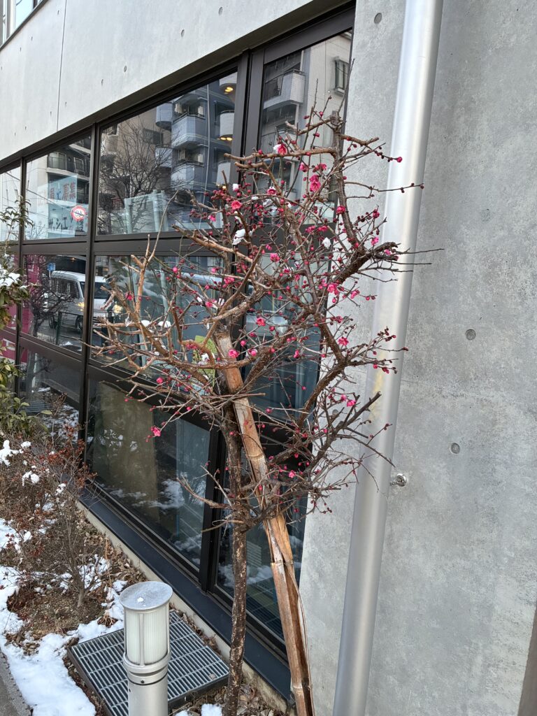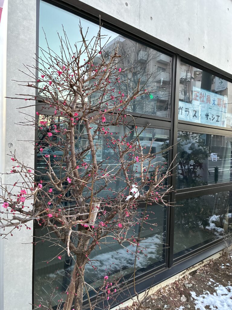 今年も当社玄関前の花桃の花が咲き始めました^^