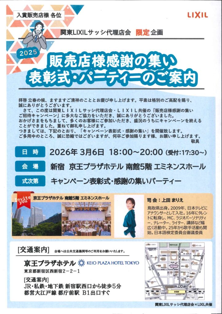 『販売店感謝の集い 表彰式・パーティ』に招待され、