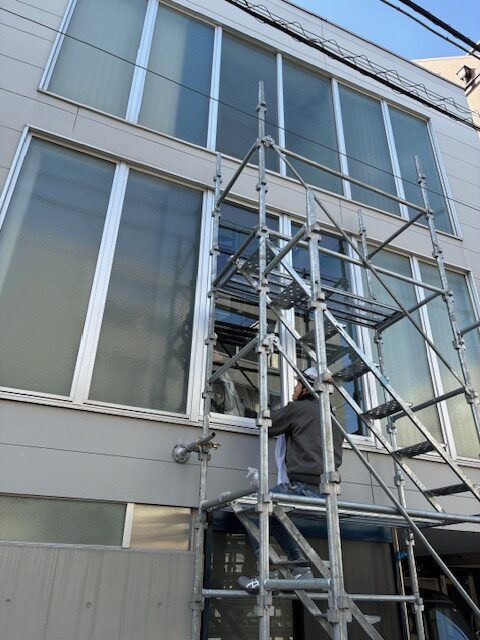 先日千駄ヶ谷現場でアルミフロントサッシ工事とガラス工事を施工してきました。
