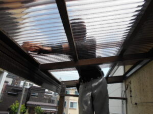 その中の1つに、ベランダの波板屋根に穴が空いてしまったというものがあり、修理のご依頼を受けました。