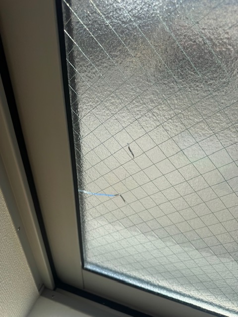 <網入り菱ワイヤー型ガラスにヒビが入っています>